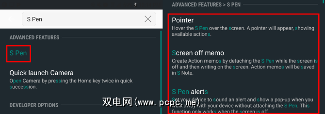 硬件可能还需要一些其他软件。例如,S笔接受多个配置选项。制造商将创建这些组件(如上图所示的“设置"屏幕),并将它们从AOSP添加到Android代码库中。