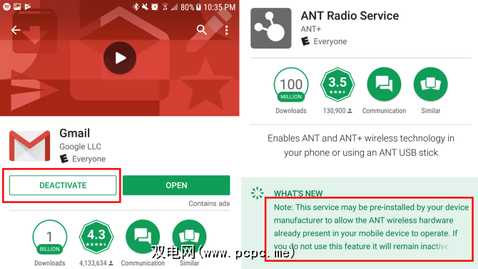 您可能会注意到这些隐藏在Google Play应用中的媒体库中。他们可能会在纸条上说无法卸载。否则,它们可能具有“停用"(如下图所示)或“卸载更新"之类的按钮来代替通常的“卸载"。
