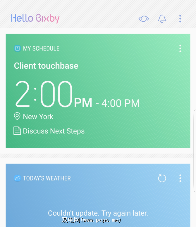 First of these is Bixby, a voice-enabled assistant that competes with Amazon’s Alexa and Google’s Assistant. Once you configure what types of information you want to see (as shown in the below image), Bixby’s artificial intelligence is supposed to learn the more you use it. It will make recommendations and present them to you in the form of cards shown on the home screen.
