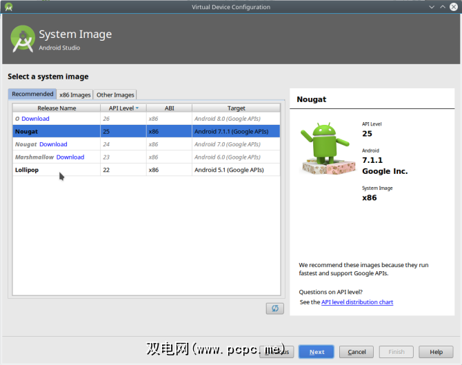 要获得免费的跨平台选项,您可以下载并安装Android Studio并运行随附的SDK Manager。它允许您下载每个版本的Android的编程资源(如下图所示),包括每个版本的“系统映像"。