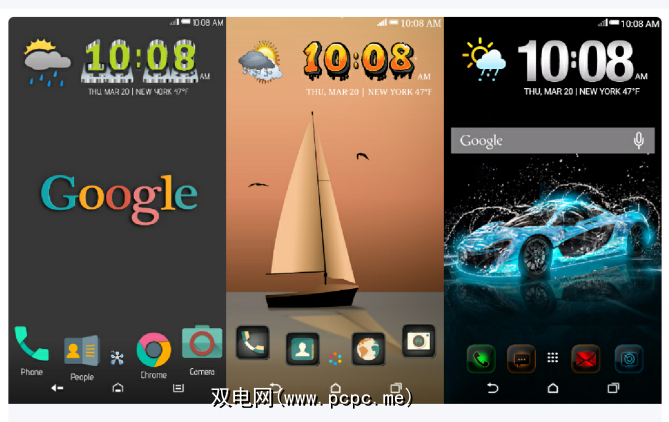 公司的 Sense界面总体来说非常接近库存的Android启动器。大多数更改都集中在简化功能和外观上。但是主题引擎允许大量的美学定制,但是它们的总体布局和对用户界面的控制并没有偏离很多。
