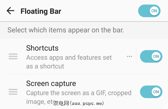 您还可以自定义在浮动栏上可访问的快捷方式或应用程序。它们可能是:设置屏幕,收藏夹联系人,音乐播放器控件或快速截图的功能。