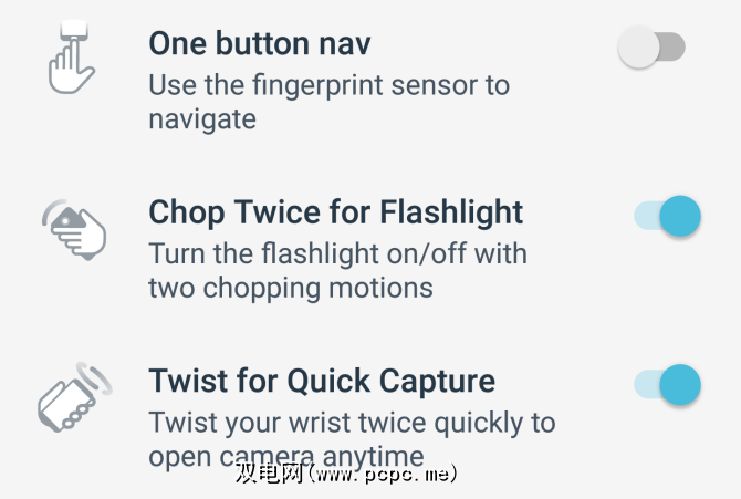 您无法像其他操作一样更改这些手势。品牌。但是它们确实捕获了常见需求的选项(例如,当手机面朝下时将其置于“请勿打扰"模式)。
