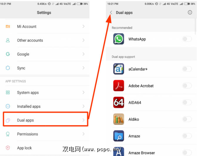 但是此功能允许您“克隆"一个应用程序,并将其设置在沙盒中自己的数据和设置。 MIUI 8将在“设置"屏幕中以这种方式列出其支持的应用程序。轻按应用程序的开关将创建第二个配置文件。
