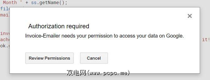 它将要求您确认脚本的授权以访问您的其他Google数据(例如Gmail和表格。)