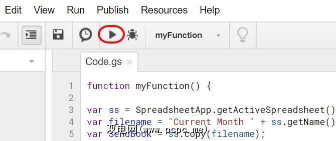 function myFunction() { var ss = SpreadsheetApp.getActiveSpreadsheet(); var filename = "Current Month " + ss.getName(); var SendBook = ss.copy(filename); var ToUser = "[email protected]" MailApp.sendEmail({ to: ToUser, subject: 'Here is my invoice for last month!', body: 'Hi! I have attached my invoice for this month. Thanks for the work, really appreciate it! -Ryan', attachments: [SendBook.getBlob().setName(filename)] });}如果您对sendEmail函数的工作方式感兴趣,那么我们已经介绍了sendEmail函数。