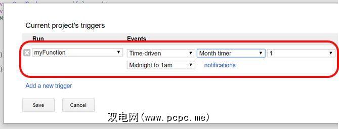 单击“保存"后,Google脚本将在每月的1号通过电子邮件发送发票的PDF格式。