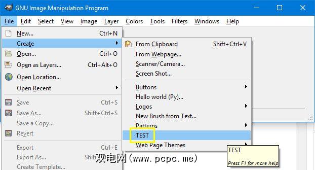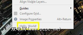 初始化GIMP并打开 Image 菜单。您应该看到世界您好!就在底部。