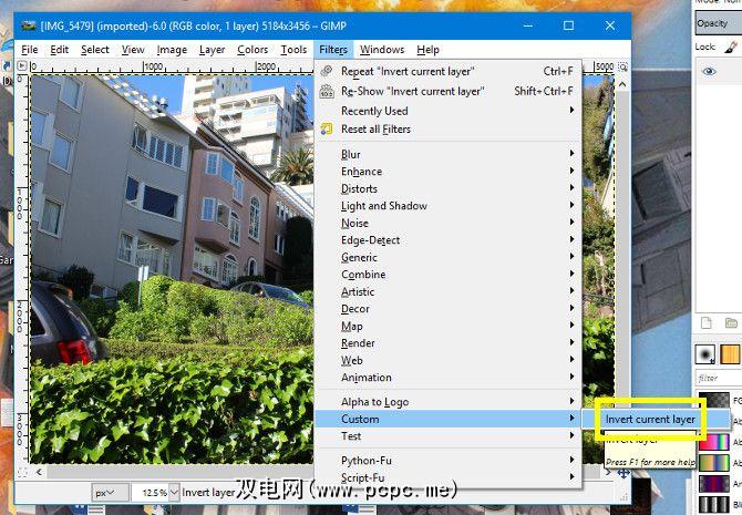我们正在定义我们的过程,告诉GIMP我们将引用什么组件,然后使用 pdb.gimp_invert 来指示程序调整颜色。将其保存为.py文件格式,将其添加到plugins-ins文件夹中,然后打开GIMP以检查其是否有效。