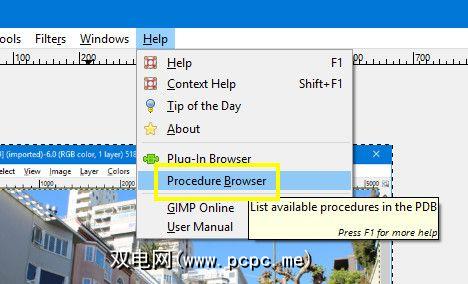 幸运的是,GIMP可以提供一些帮助。导航到帮助>过程浏览器,您将能够访问所有可以使用的过程的列表。