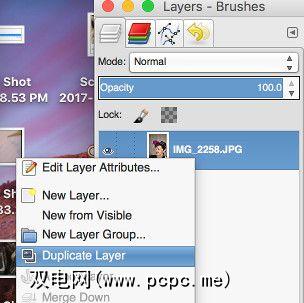 在GIMP中打开您选择的图像。在执行其他操作之前,我们将复制原始图像。在 Layers (图层)窗口中右键单击它,然后选择 Duplicate Layer (复制图层)。