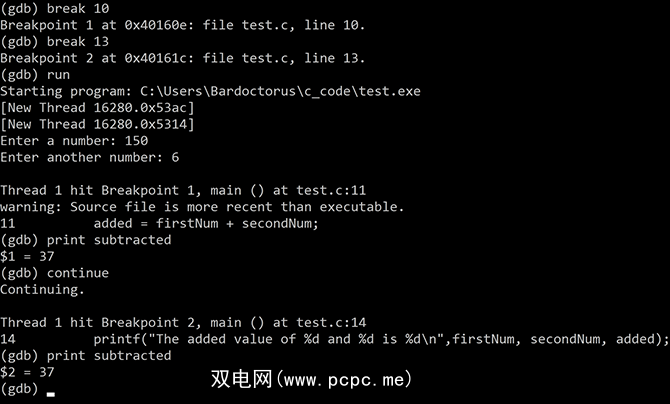 然后,程序正常运行。输入数字,然后程序在第10行之后暂停。调试器被要求打印出减法的值,该值显示为37。这很有意义,我们尚未告知减法值,因此它有一个随机值。
