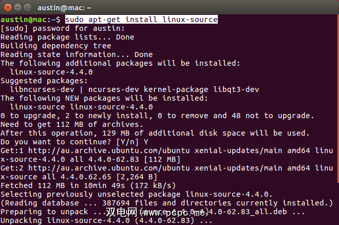 sudo tar xjvf linux-source-4.4.0.tar.bz2当然,请确保使用正确的名称替换文件。该文件将很大,因此该过程将花费一些时间!