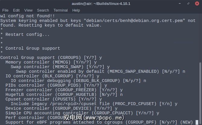 sudo make localmodconfig这将创建一个名为 .config 的文件,该文件告诉GCC从内核源代码编译什么。 make localmodconfig 命令检测当前正在运行的内核组件,并将其标记为要编译。如果内核位于您拥有的文件夹中,则不需要sudo 即可正常工作。