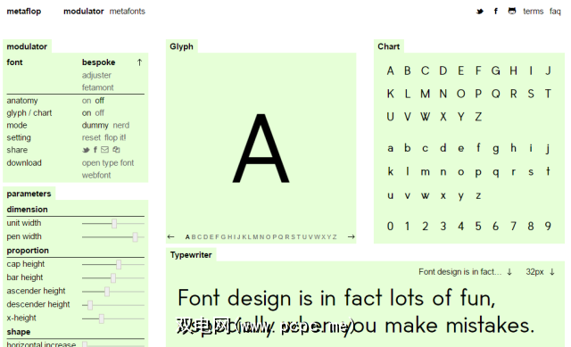 Metaflop是我要介绍的最简单的字体创建软件。这是一种探索字体如何改变几何形状的好方法。 Metaflop的“调制器"功能使您可以更改三个不同的“元字体"的参数。