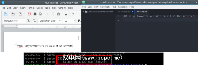 但是,当您需要在封面上表示文本字体或自动填充日期之类的内容时,事情会变得更加复杂页。在这种情况下,ASCII字符会构成基于文本的格式,例如Markdown或XML。尽管这赋予了纯文本如透明性的好处,但这些文件通常需要更多空间来存储诸如标签之类的元素。请考虑以下纯文本的一句话文件,然后考虑使用XML的开放文档格式的“平面ODT"(FODT)格式。下图显示纯文本版本为53字节,而ODT版本为 25,000字节。