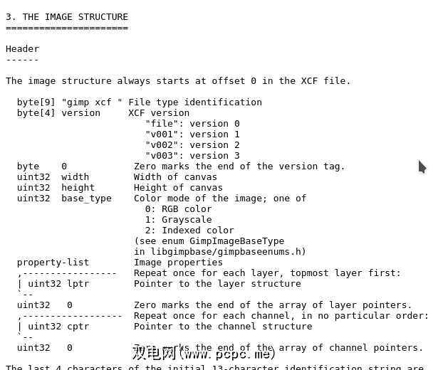 该项目详细说明了格式如何将构成GIMP文件的图形,文本和图层保存为原始位和字节(如下所示)。开发人员可以使用此代码编写自己的实现,以便诸如ImageMagick工具包之类的外部应用程序可以导入它们。
