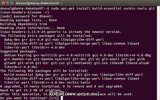 这将安装编译工具,制作内核模块所需的内核头文件,与我们正在制作的内核模块一起工作的音频播放工具,以及用于开发版本控制的git实用程序,我们将使用该实用程序检索代码。