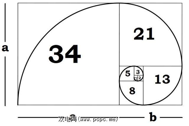 如果将该矩形的区域划分为一系列正方形,正如LiveScience所展示的那样,它形成了斐波那契数列的螺旋: