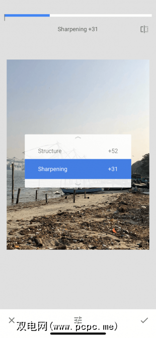 返回工具部分,然后点击详细信息。在这里,您会找到两个编辑选项:结构和锐化。如果您的照片上带有纹理元素(例如木头或铁锈),则这些工具最有效。