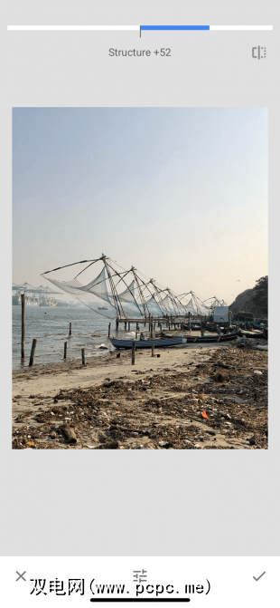 结构工具将帮助您为照片添加哇效果,但请确保你不要过度。 锐化工具可以改善某些照片的细节,但是,副作用是,它也可能使图像变粗糙。进行更改之前,请谨慎使用这两种工具并放大图像的某些部分,以确保没有质量损失。