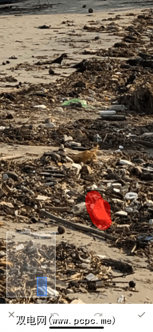 选择修复选项后,放大要修复的图像部分。然后,用手指在您想要治愈的区域上刷一下。它将以红色突出显示。释放后,它将被周围区域的像素自动替换。