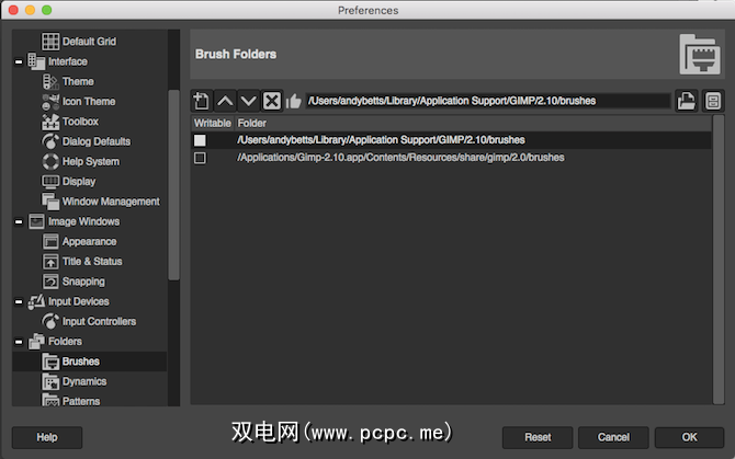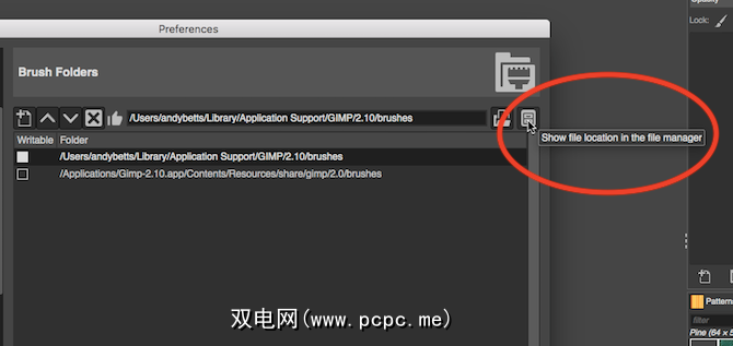 在GIMP中,您可以通过将画笔粘贴到Brushes文件夹中来手动安装画笔。此文件夹的位置因使用Windows,Linux或Mac而异,但是在所有三个平台上都有一种简便的查找方法。