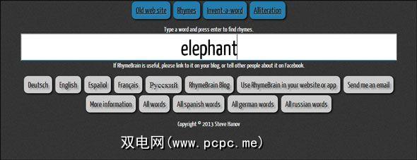 Rhyme Brain的打开界面简单而诱人。它是一种多语言的押韵生成器,说荷兰语,西班牙语,俄语,德语,法语和英语。在大框中输入您的单词,然后按Enter。 Rhyme Brain会以您选择的语言生成并显示押韵单词。 Rhyme Brain使用机器学习将关键字与其对应的语音词进行匹配。结果还包括近韵和偏韵(不完美的韵)。 Rhyme Brain还可以为您提供portmanteaus和头韵。