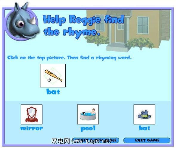 尽管这是一个很好的教学辅助工具,但学堂网站似乎只适合幼儿园学生。 Reggie Loves to Rhyme通过有趣的彩色图片和声音进行交互。它的设计类似于游戏。从屏幕截图中可以看到,孩子们将不得不选择一个房间并进入房间,他们必须选择对象以使其与该房间内的另一个对象押韵。