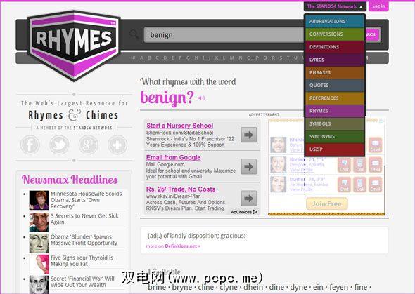 您只需记住它的含义,因为它来自Merriam-Webster。英语词汇学领域中最古老,最受尊敬的名字之一是精心设计的字典,适合儿童使用。 Word Central具有字典,同义词库,押韵词字典和互动游戏。押韵字典会列出一长串可能与您的关键字押韵的单词。我尝试了一些不太常见的单词;结果令人印象深刻。可以预期,像Merriam-Webster这样的资源将有大量的单词索引可供使用。