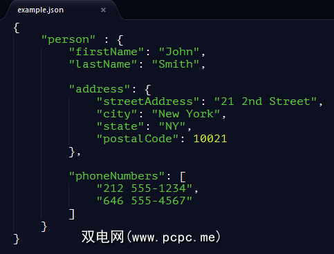 JSON只是一系列属性值对,可以在必要时嵌套在它们内部。例如,如果我们的数据对象是一个人,则该人可由以下JSON数据表示: