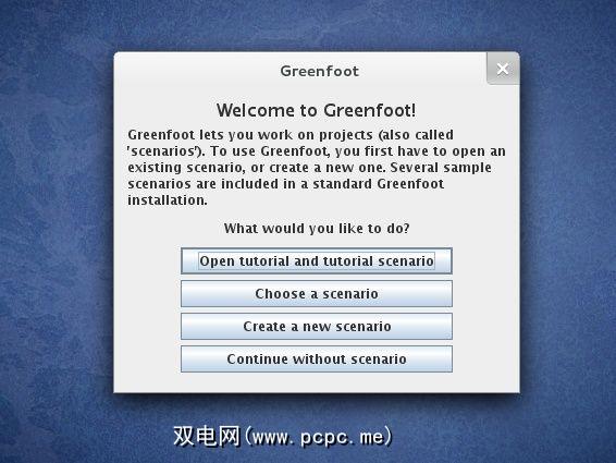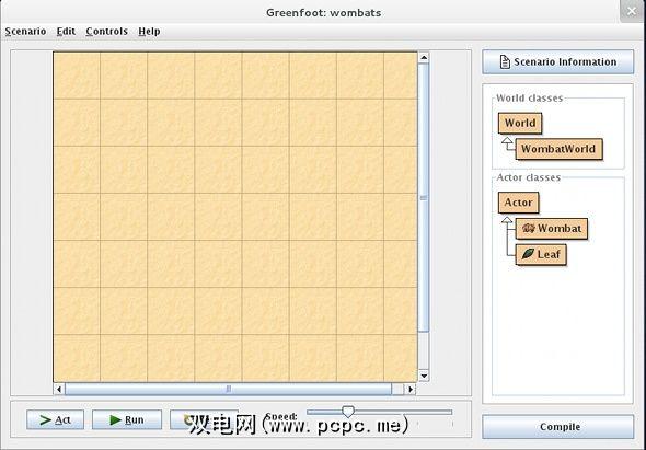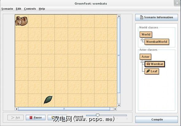 启动Greenfoot时,您将出现欢迎对话框。如果您以前从未使用过Greenfoot,建议您选择本教程的场景。然后,您的浏览器将打开该教程,Greenfoot将启动该教程场景,名为“ Wombats"。