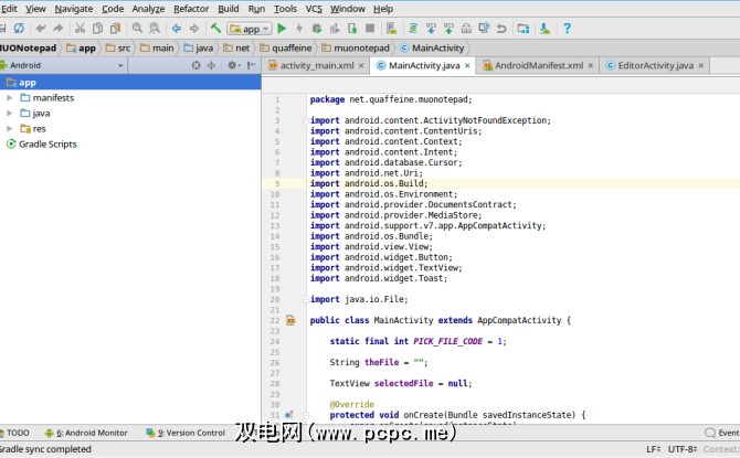 现在切换到EditorActivity.java文件。我们将编写一些与App Inventor中相似的功能。