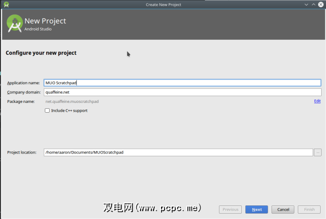 首先启动Android Studio,然后选择启动新的Android Studio项目项目。您将通过向导向导询问一些事项。第一个屏幕要求输入应用程序的名称,域(如果您提交到应用程序商店,这很重要,但是如果您只是为自己开发,则不重要),以及项目的目录。
