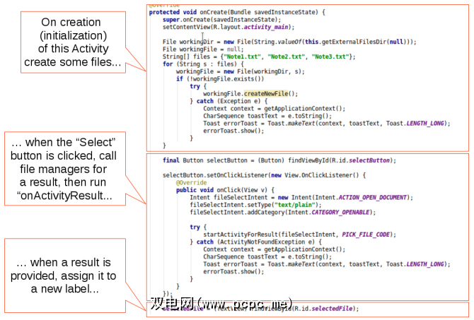 一个将创建一个文件来存储文本(如果不存在),或者读取其内容。几行代码将创建 EditTextBox 并将文本加载到其中。最后,更多的代码将创建Button及其onClickListener(它将文本保存到文件中,然后关闭Activity)。