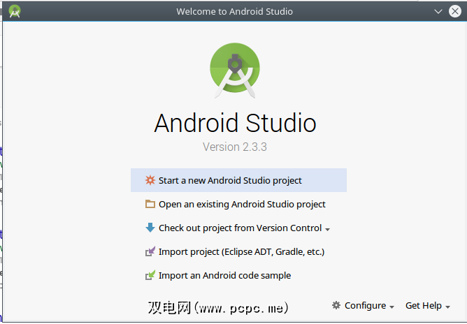 安装完所有内容后,您会看到一个小的启动屏幕,让您可以创建新项目,打开现有项目或访问设置。