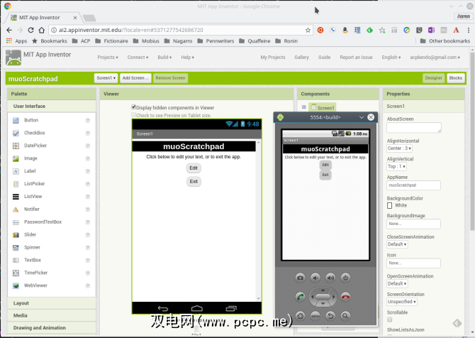 麻省理工学院的App Inventor网络应用程序是一个例外,该应用程序功能齐全且免费。使用Google帐户登录后,您可以在几分钟内一起单击某个应用程序,然后在手机上或通过Android模拟器对其进行预览。