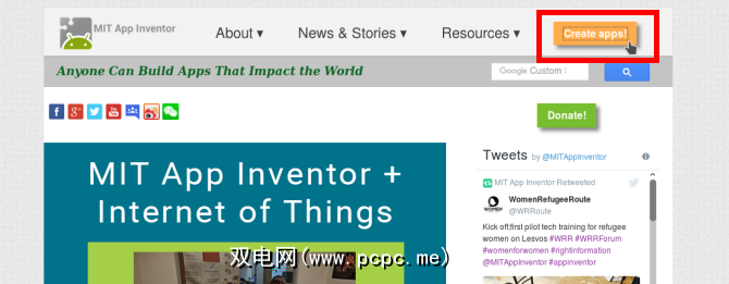 您无需安装任何东西即可使用App Inventor工具。这是一个网络应用程序,您可以完全通过浏览器访问它。当您访问该网站时,您会在右上角看到一个用于创建应用程序的按钮!如果您当前尚未登录Google帐户,则点击该按钮会将您定向到日志-p页面。