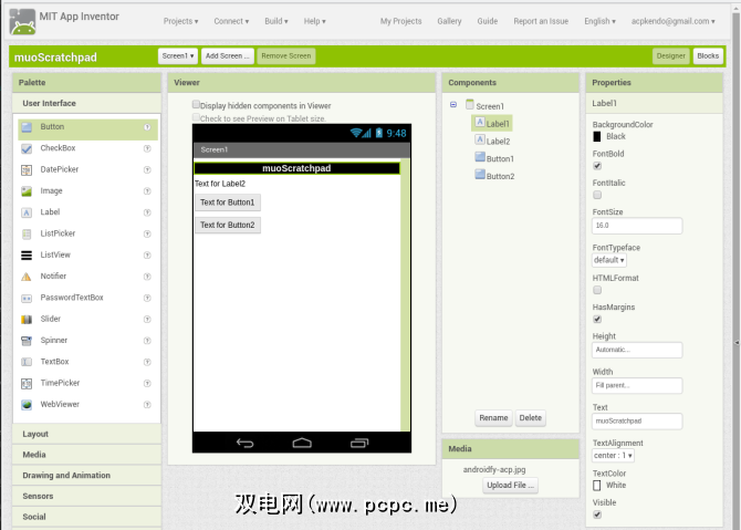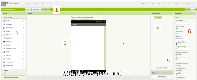 但是现在您已进入App Inventor的Designer视图,并且可以使用很多内容。让我们花点时间看一下每个部分。