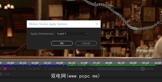 在随后的下拉菜单中,选择空对象。最后,在 Tracker 面板中单击 Apply 。在随后的窗口中,输入应用尺寸的参数。要完全跟踪运动,请选择 X和Y ,然后单击 OK 。