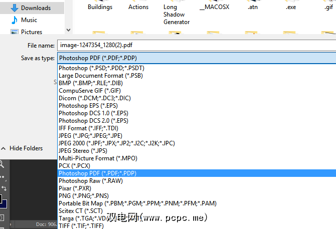 Photoshop中有两种用于打印的关键格式: Photoshop PDF 和 TIFF 。两者都显示在文件下的另存为功能中。