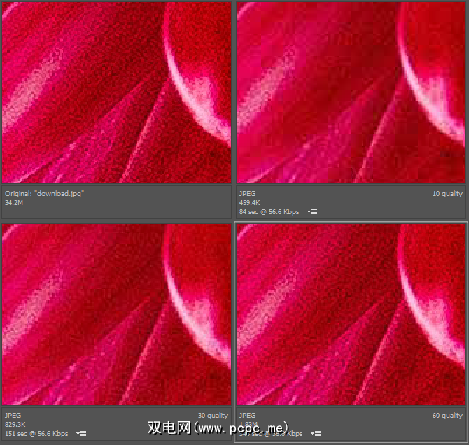 低质量的JPEG图像在图像中拥有更多相同颜色的块,而高质量的JPEG图像试图保持相同的色彩复杂度或原始图像。