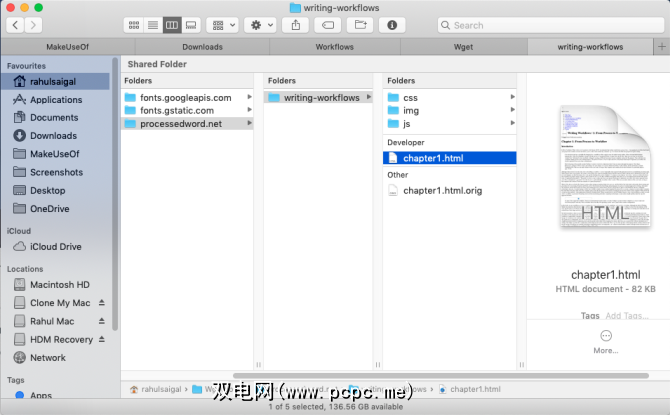 第5步:浏览至Wgetdown文件夹。您将看到具有所有网页资产和Chapter1.html的主域处理过的word.net文件夹。