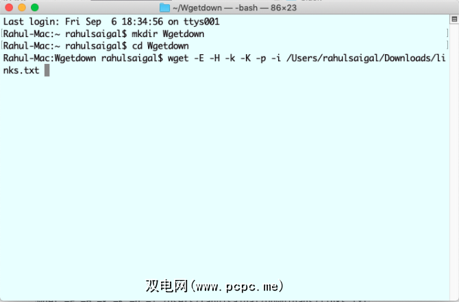 mkdir Wgetdown这将在以下位置创建一个新文件夹主目录。您可以随意命名。接下来,输入