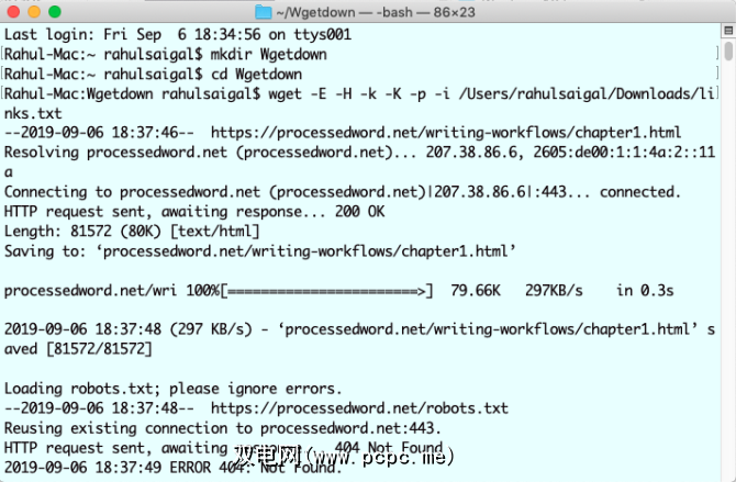 wget -E -H -k -K -p -i /Users/rahulsaigal/Downloads/links.txt