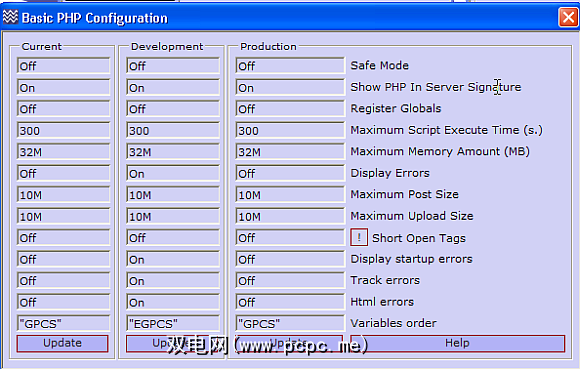 单击PHP以访问可以在此服务器上更改的PHP设置。这真的很好,尤其是在经历了尝试修改XAMPP服务器上的PHP设置之后。以前从未做过,这真是令人沮丧的经历。有了The Uniform Server,一切都在这里为您布置。您仍然需要知道如何进行更改,但至少不必浪费时间寻找正确的ini和配置文件。