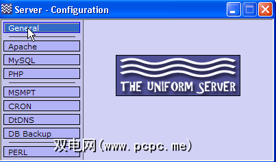 在Uniform Server应用程序中,单击“ 服务器配置"按钮以查看Web服务器的所有方面。您可以在此应用中进行修改。这与以前的Uniform Server版本略有不同,后者以前将基于Web的管理页面用于所有这些配置设置。现在,所有这些操作都通过此本地运行的,基于非浏览器的应用程序完成。