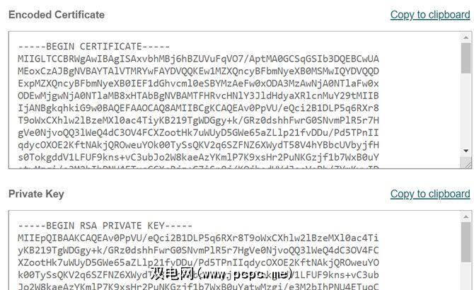 使用哪种选择,订购证书时都会看到类似下一页的页面。证书和密钥都是软件包的一部分。