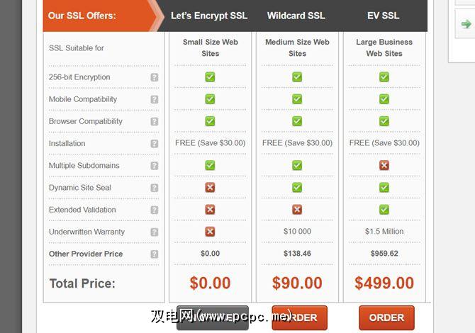 提供免费SSL证书的SSL服务通常也提供付费证书。
