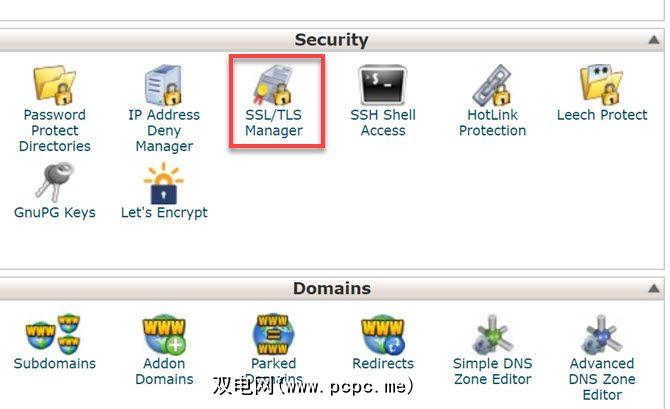 要安装证书,您需要进入cPanel并单击 SSL / TLS Manager 。